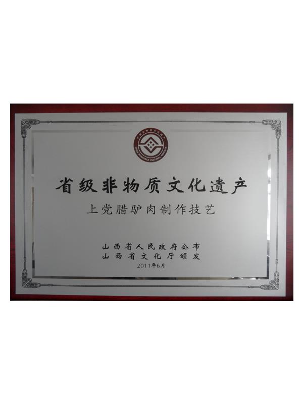 《本草綱目》第五十卷記載有:“驢肉味甘、無毒、解心煩、止風(fēng)狂、能安心氣、補血益氣、治遠年勞損”的作用,尤其對失眠、健忘、眩暈、營養(yǎng)不良、貧血癥有獨特療效。上黨臘驢肉是山西長治市的漢族傳統(tǒng)名吃,其肉質(zhì)肥而不膩、瘦而不柴、香味四溢、回味無窮。早在明代,臘驢肉就已馳名于上黨和晉南地區(qū),產(chǎn)品遠銷北京、天津、南京等南北名城。臘驢肉與當(dāng)?shù)氐臎龇邸⑺只馃环Q為潞安府(長治古稱潞安府)三寶。